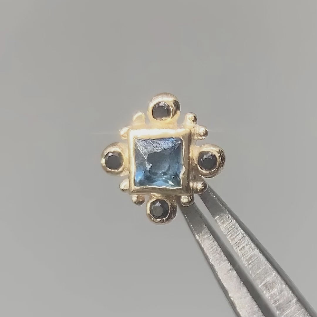 Add gorgeous color to your day or night jewelry style with our handcrafted, brightly polished Blue Sapphire 14k Yellow Gold Flat Back Earrings. Blue is a color of tranquility and wisdom—celebrate self-love or gift these luxe little studs to your beloved. A square cut blue sapphire bezel set in the center complements round brilliant cut diamonds framing in a stunning cluster.
