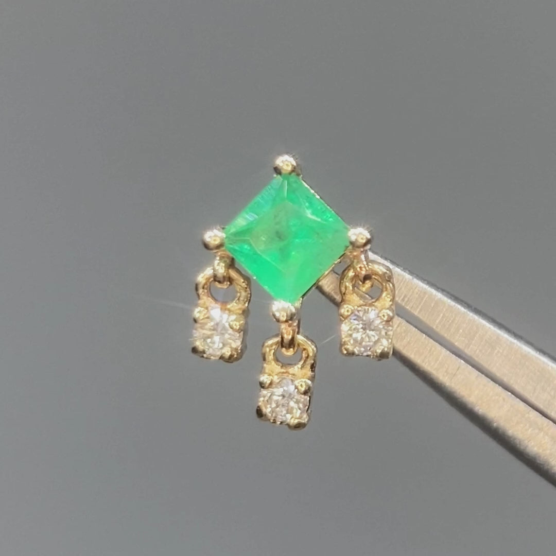 Flat Back Earring Emerald Chandelier 14k Yellow