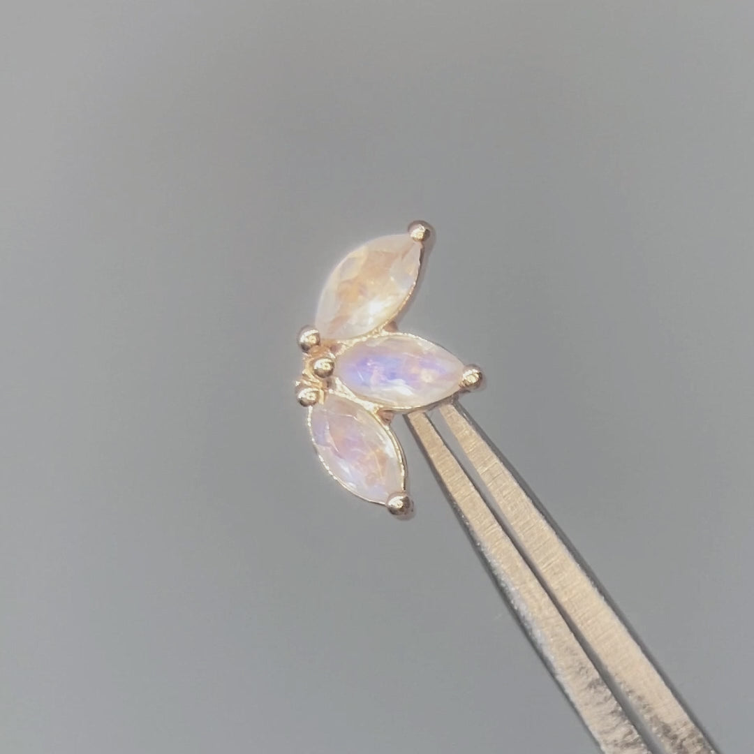 Flat Back Earring Moonstone Baby Lotus Med 14k Yellow
