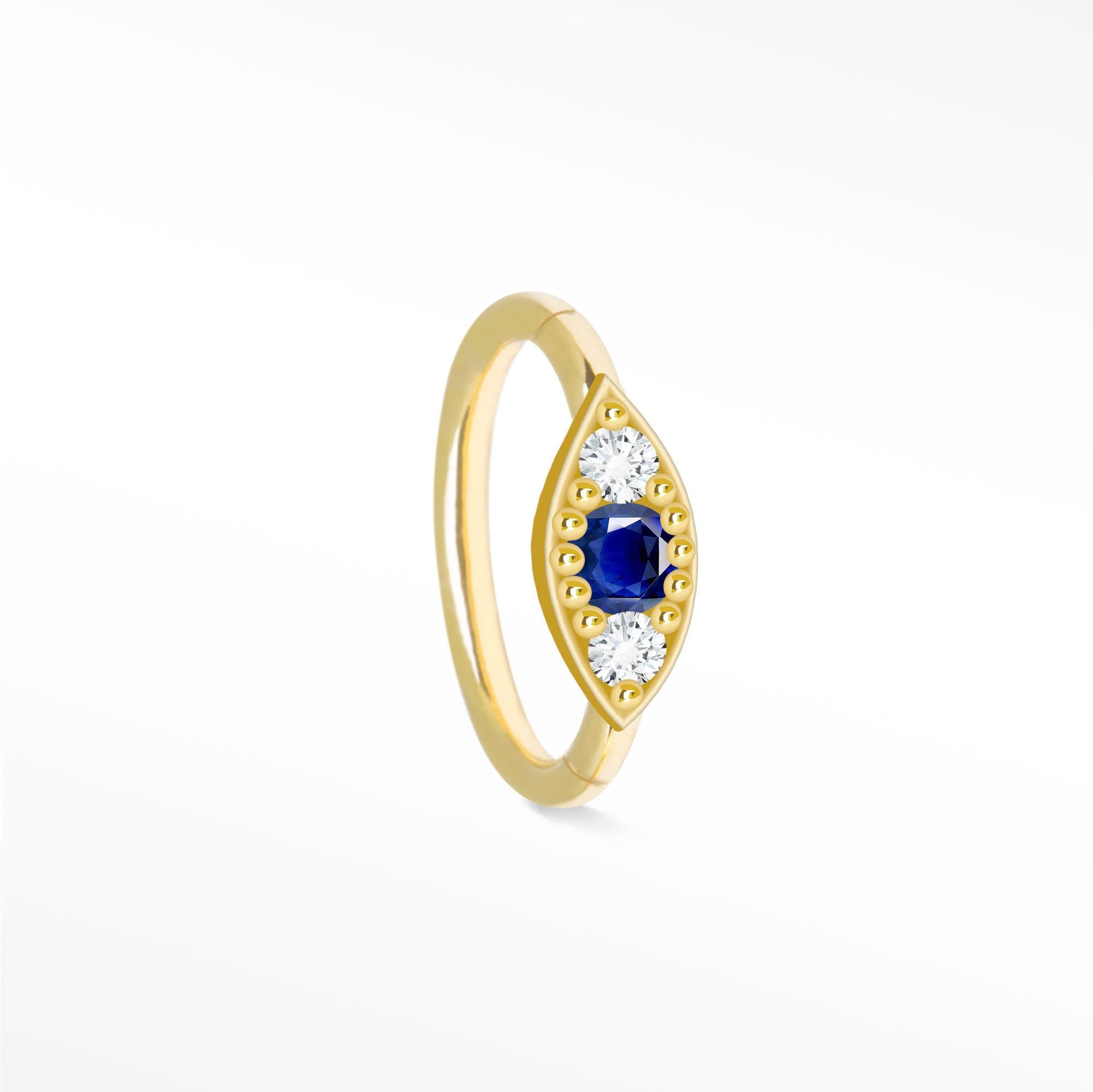 Clicker 18G Blue Sapphire & Diamond Evil Eye 14K Yellow