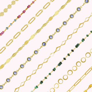 Our signature Natural birthstone chains in 14k solid gold, gold filled and sterling silver. Our in-house design texture chain in 14k gold or 10k gold white, yellow.