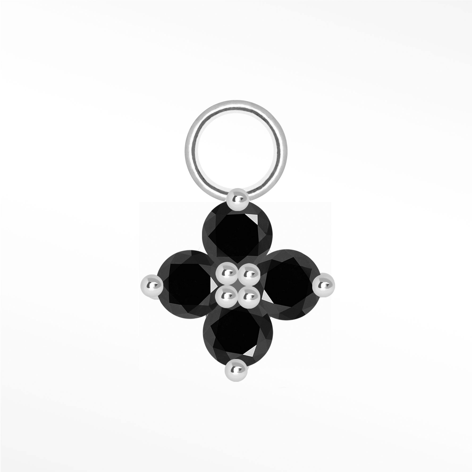 Black Diamond Clover Small Mini Charm 14K White Gold