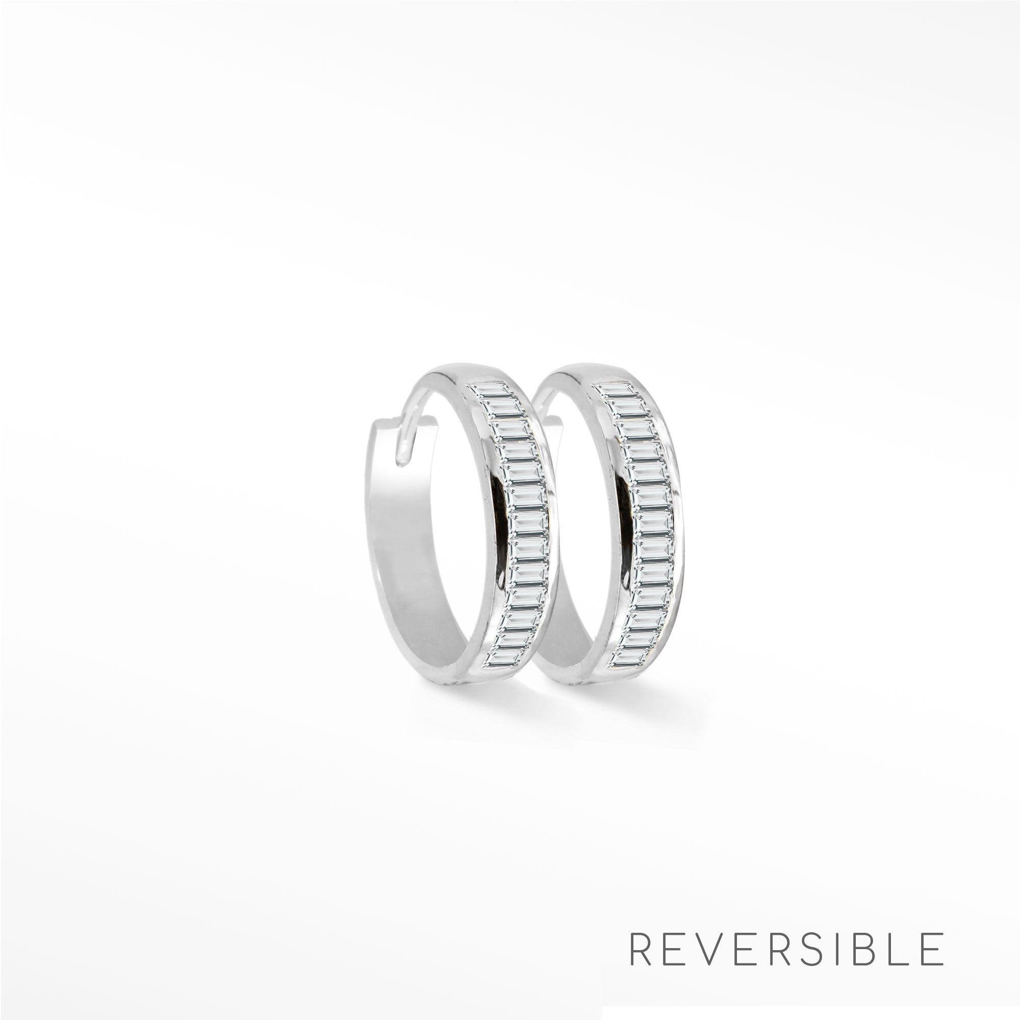 Diamond Baguette & Florentine 14k White Gold Reversible Huggies 13mm