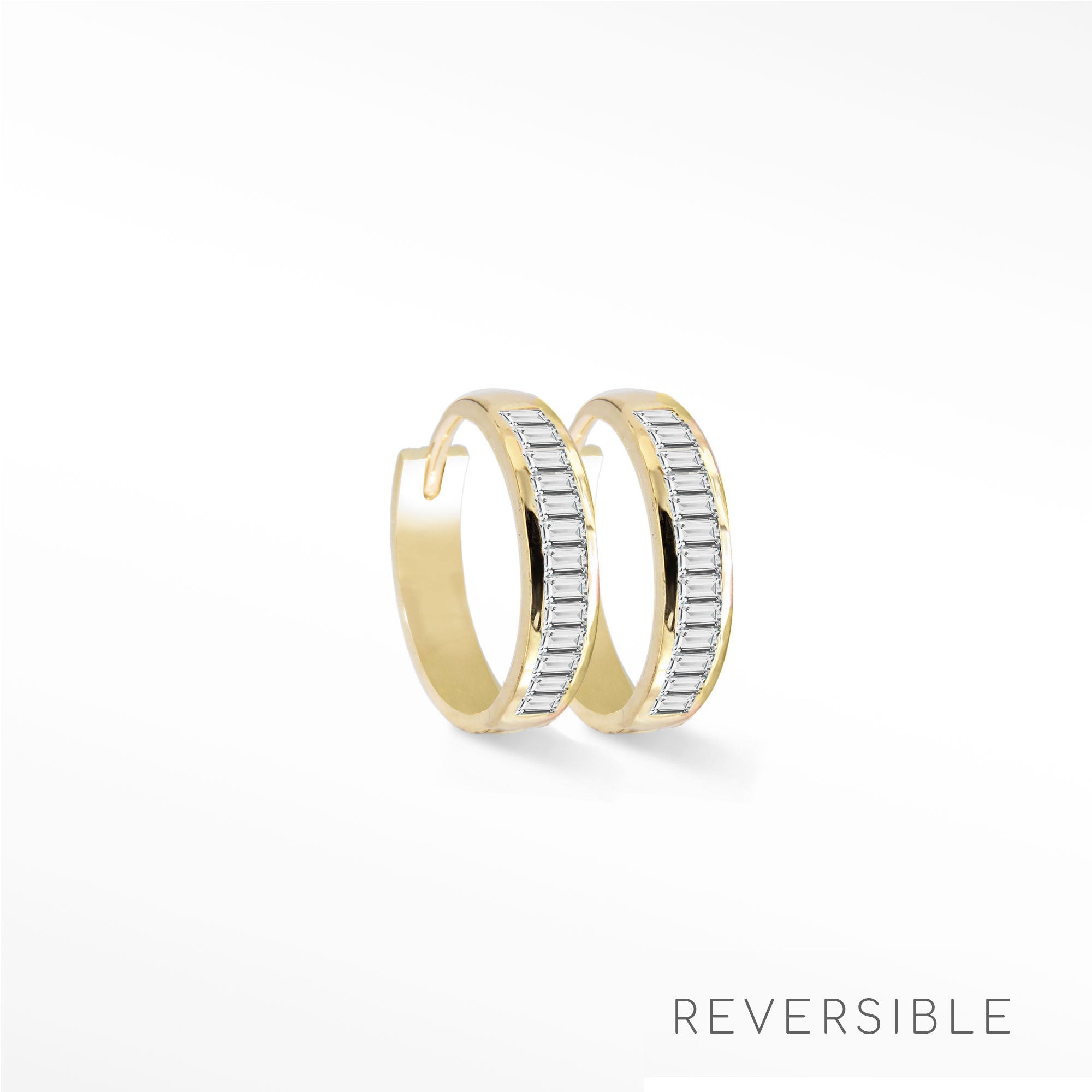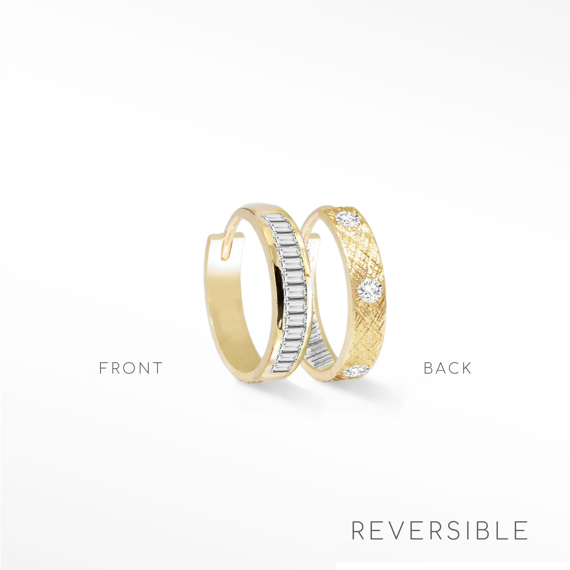 Diamond Baguette & Florentine 14k Yellow Gold Reversible Huggies 13mm