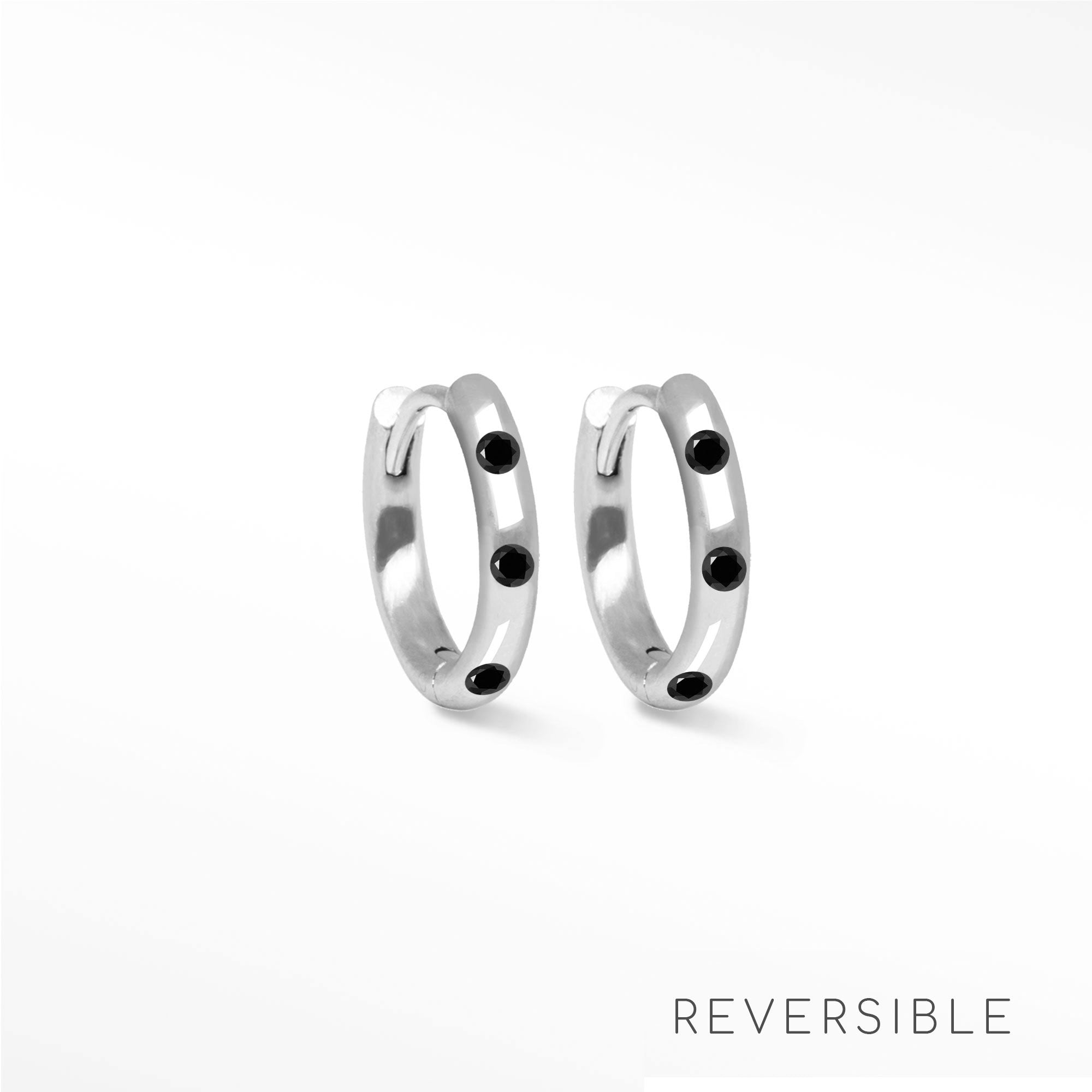 Ellie Black Diamond 14k White Gold Reversible Huggies 13mm