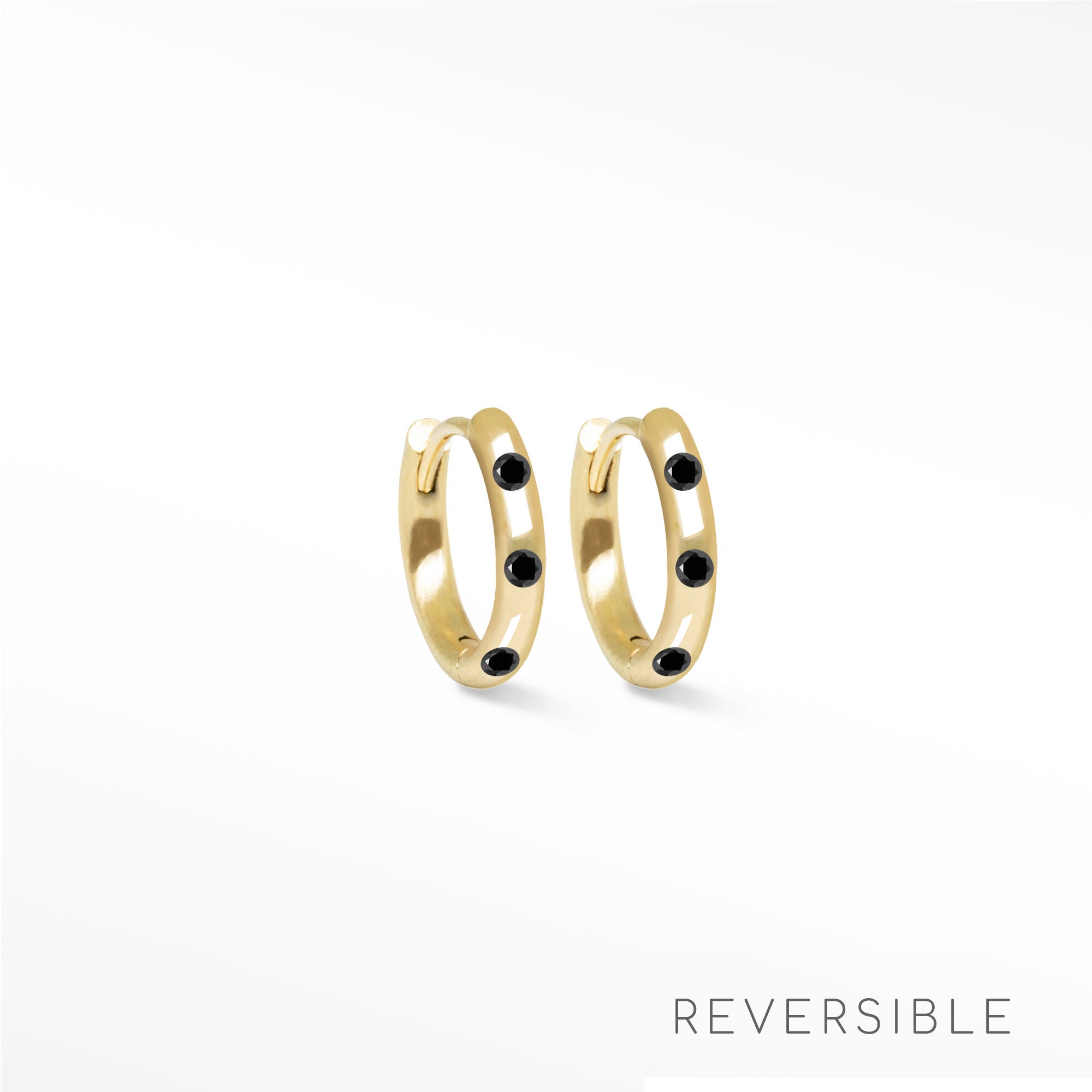 Ellie Black Diamond 14k Yellow Gold Reversible Huggies 11mm
