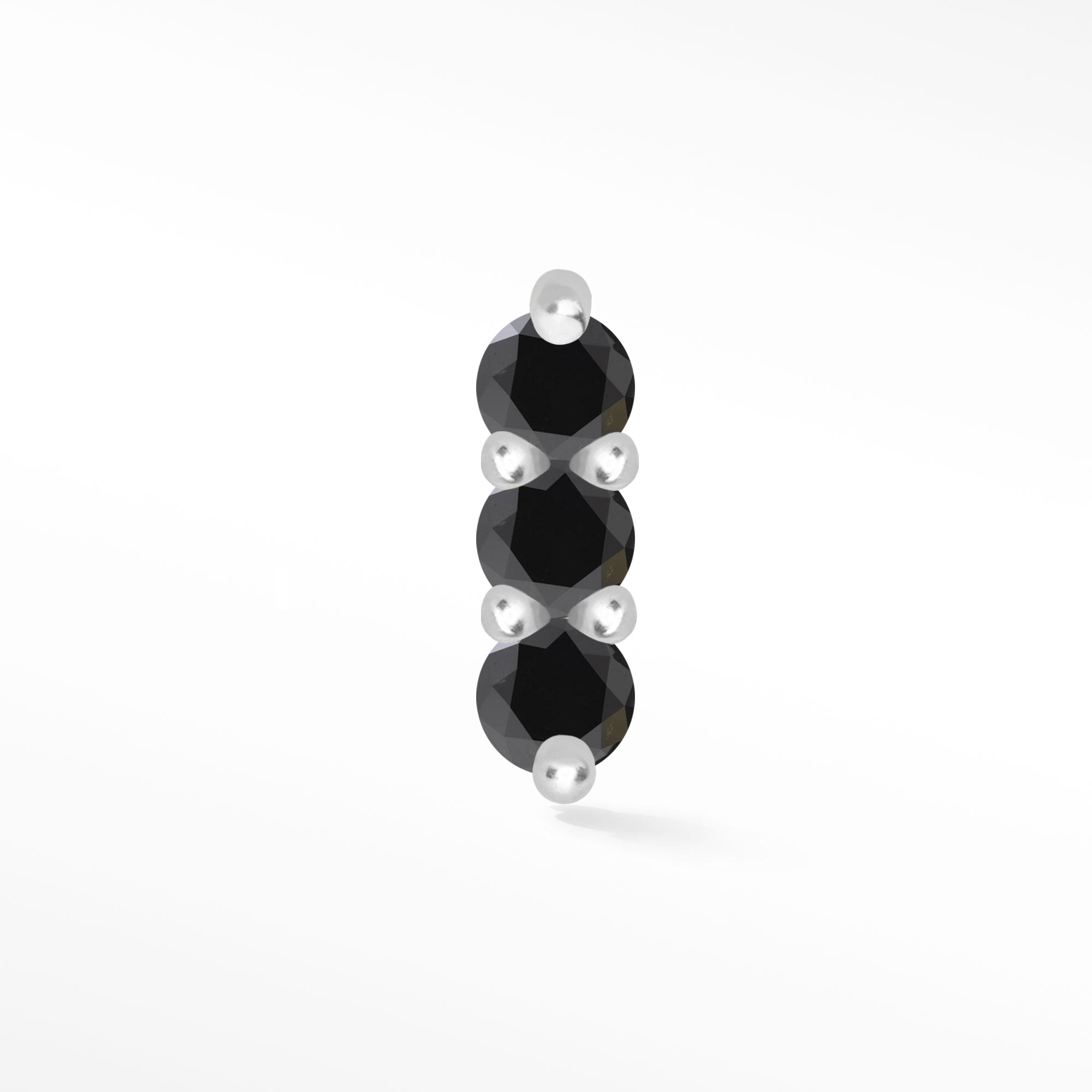 Flat Back Earring Black Diamond 3 Scones Med 14K White