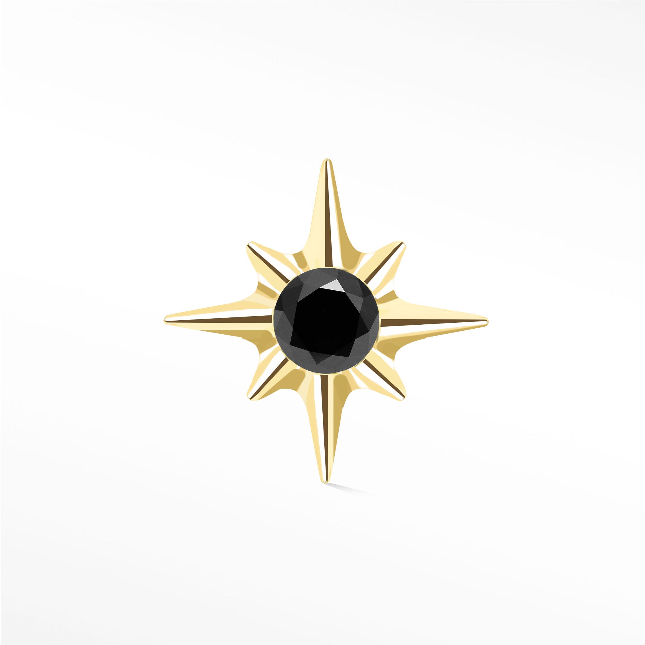 Flat Back Earring Black Diamond Shining Star Small 14k Yellow