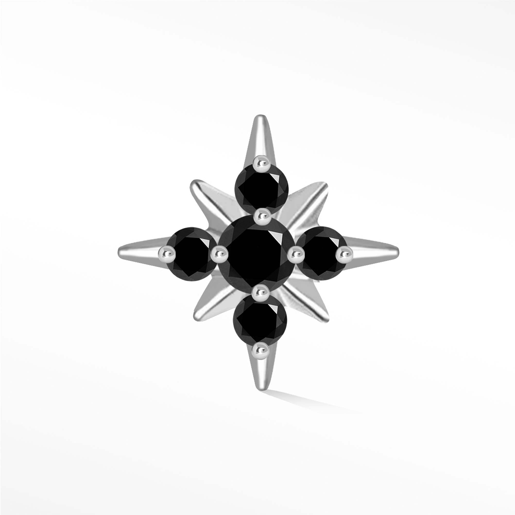 Flat Back Earring Black Diamond Starburst 6.5mm 14K White