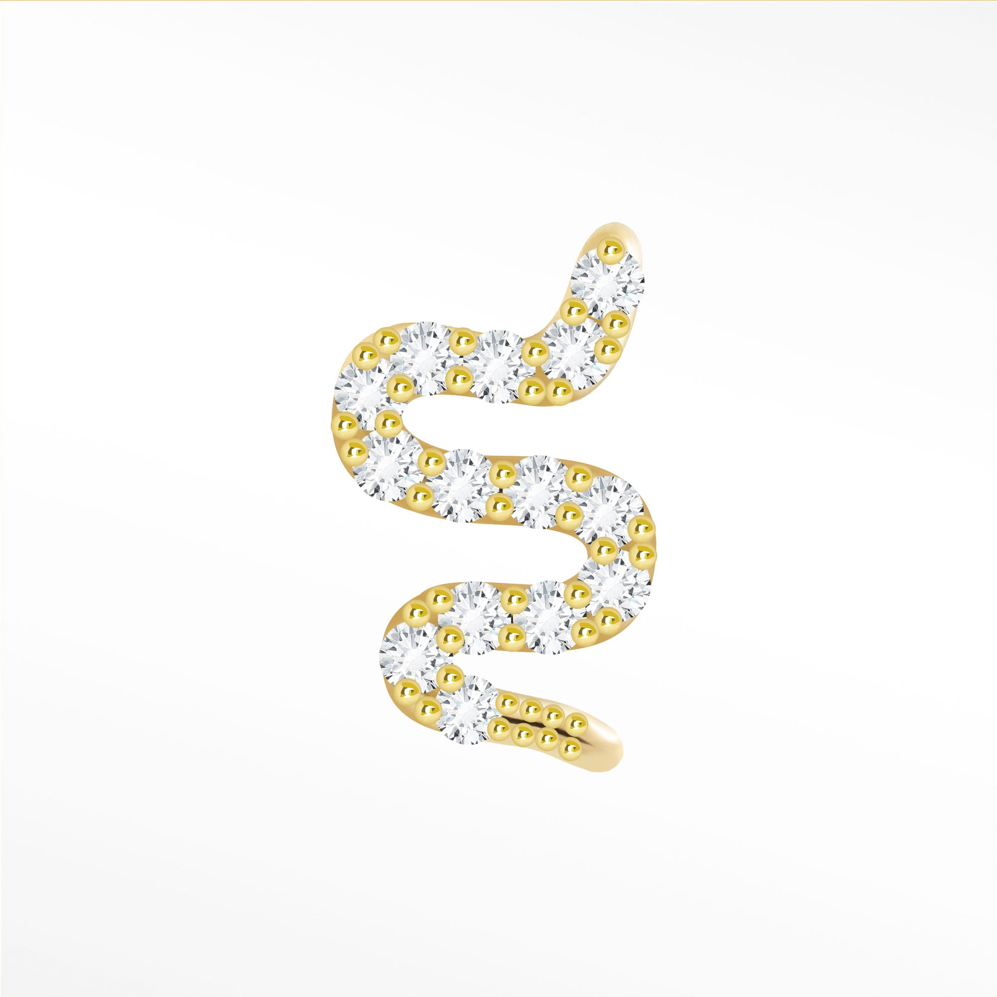 Flat Back Earring Diamond Snake Large 14K Yellow