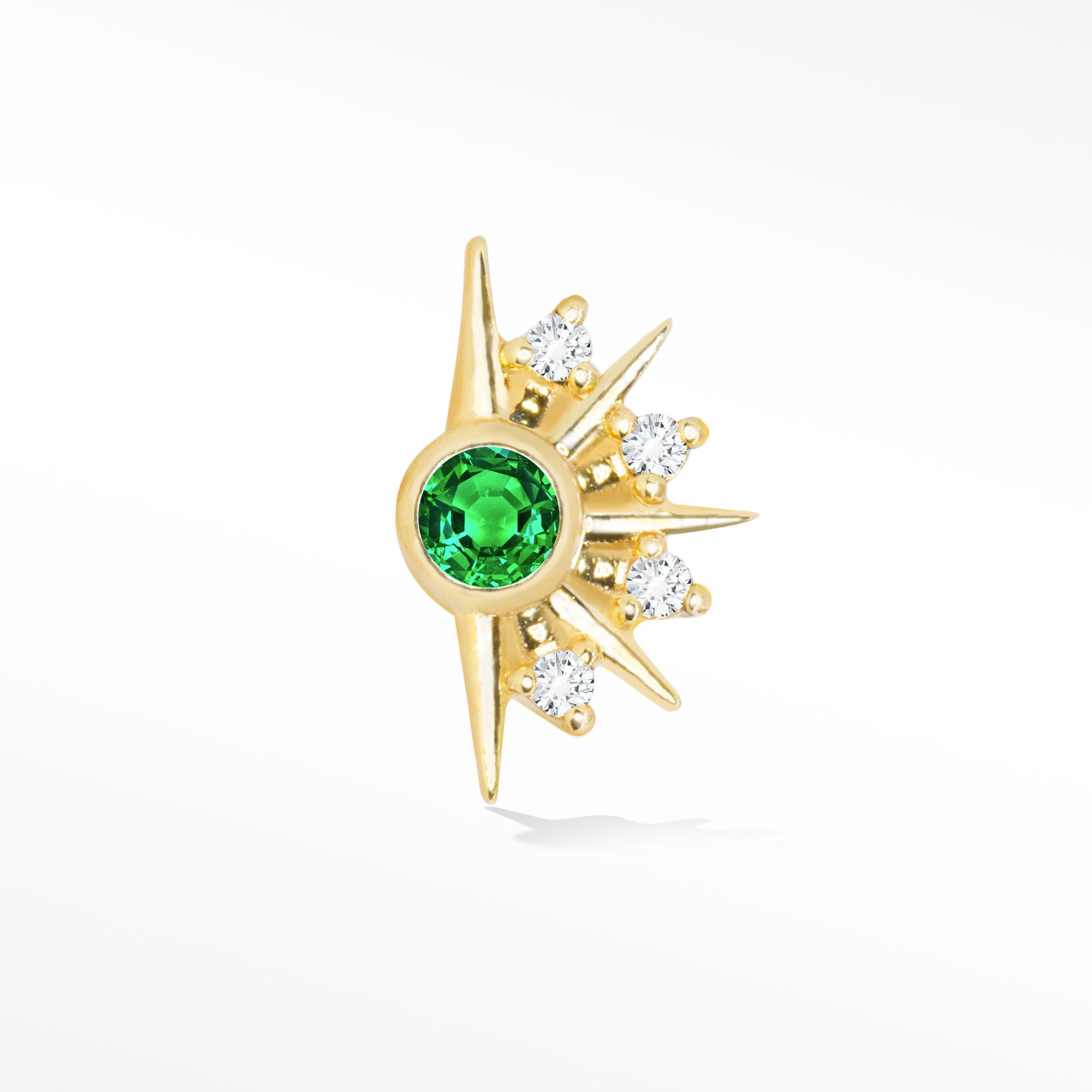 Flat Back Earring Emerald Demi Urchin 14K Yellow