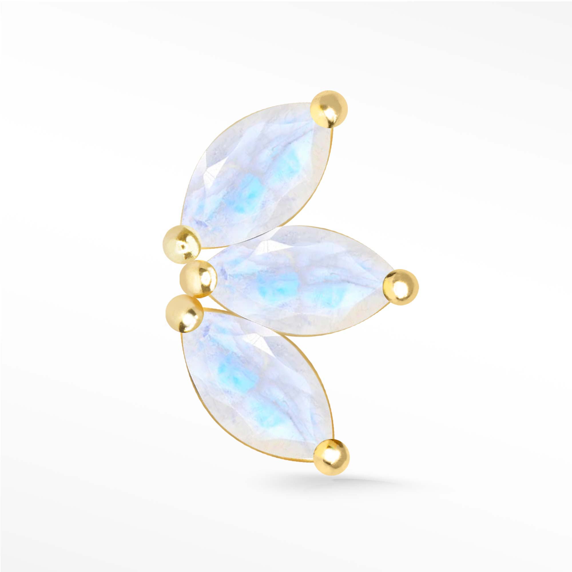 Flat Back Earring Moonstone Baby Lotus Large 14K Yellow