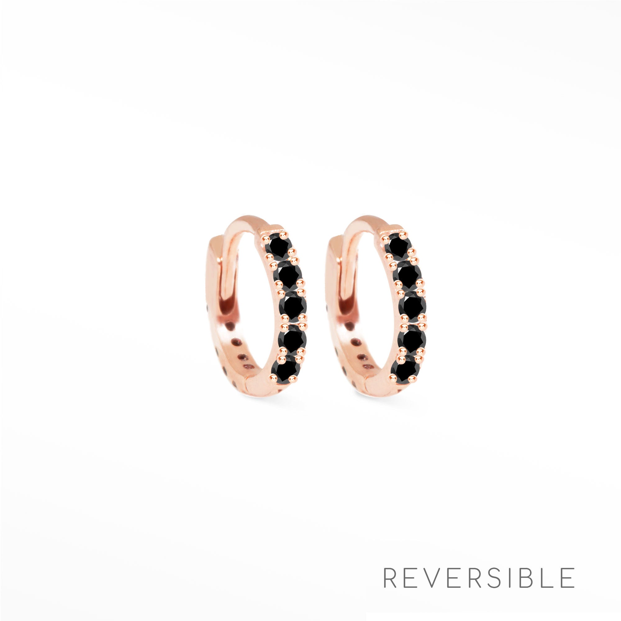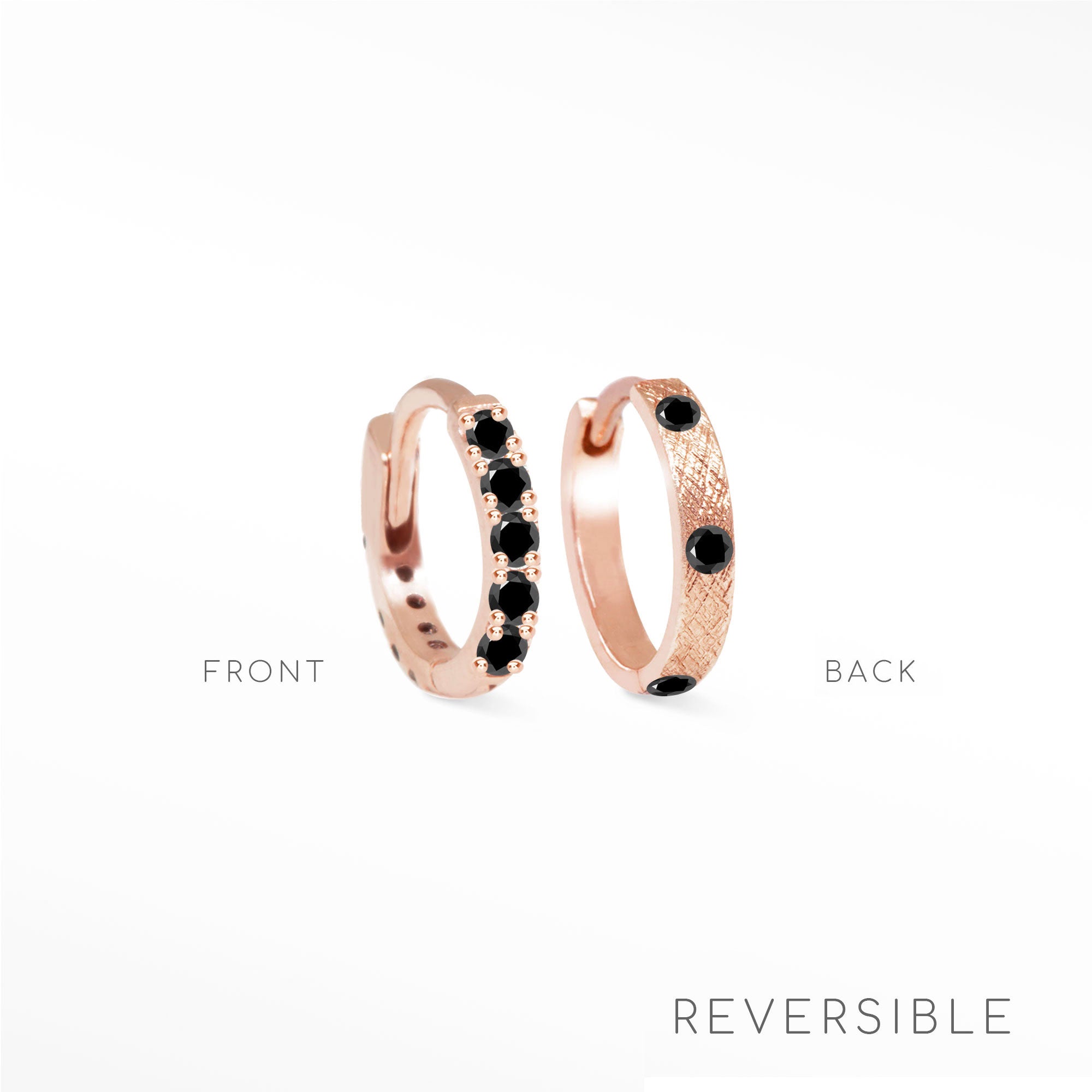 Natalie Florentine Black Diamond 14k Rose Gold Reversible Huggies 11mm